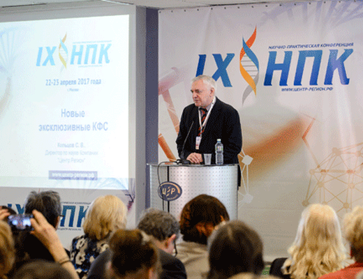 La IXème conférence pratico-scientifique s’est distinguée également par la présentation de nombreux produits de la société Centre Région. Aussi, son directeur de la recherche, Sergueï Valentinovich Koltsov, a présenté les nouveaux CEF exclusifs. La plupart des exposés étaient dédiés aux recherches menées sur l’efficacité des CEF ainsi qu’aux résultats d’utilisation de ces produits en complément des traitements médicaux.