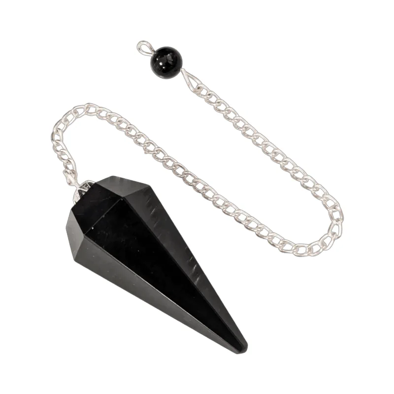 Pendule Obsidienne Noire Conique à 6 faces.